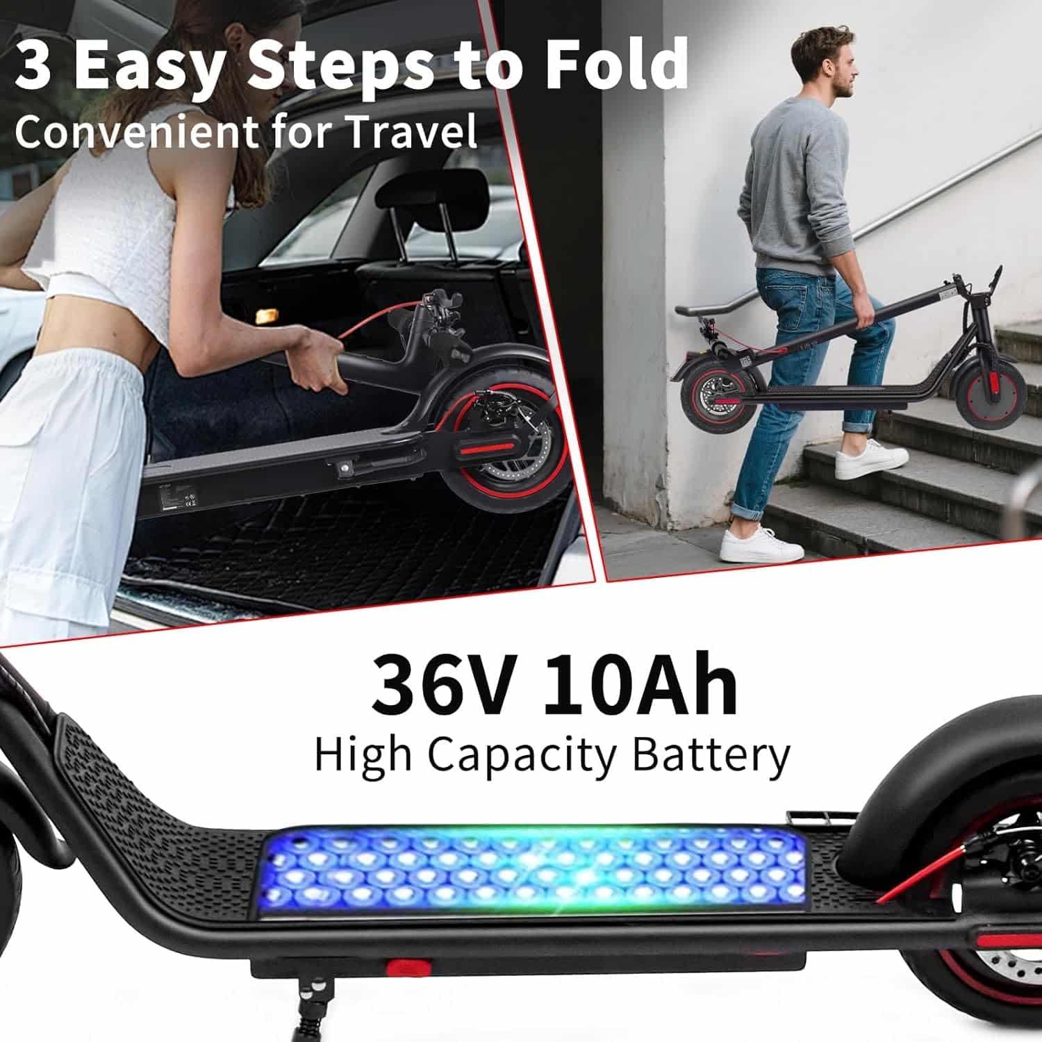 Portable Foldable Design: With a quick-fold mechanism, this lightweight e-scooter is easy to carry on public transport or store in your car trunk and hallway.