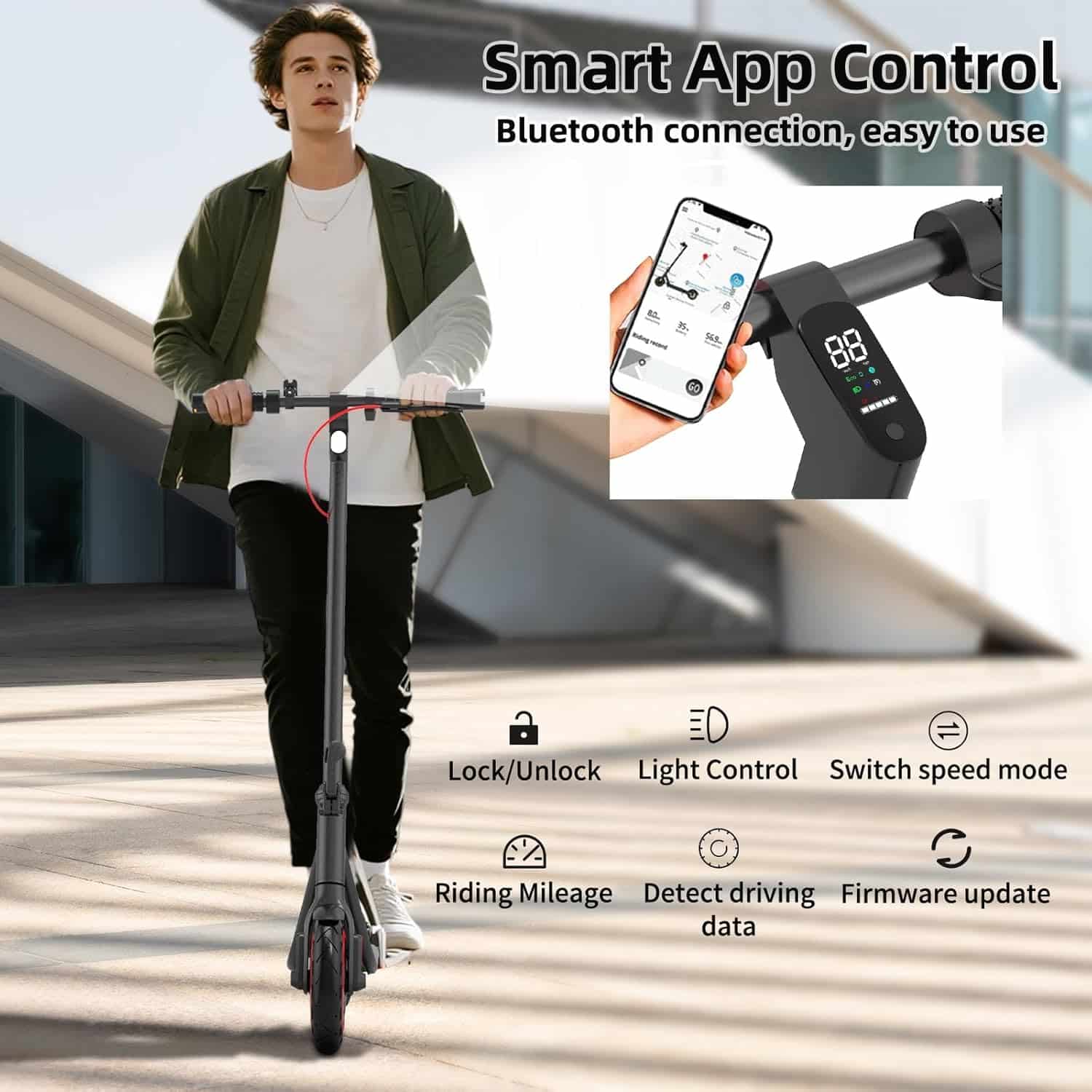 Smart App Integration: Take full control via your smartphone. Track your speed, monitor battery life, lock your scooter, and customize settings with ease.